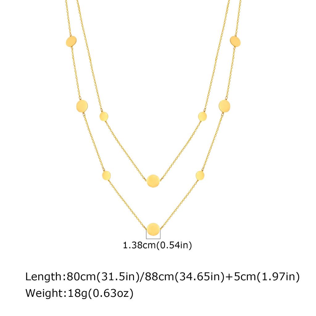 Sweater Chain, Wind-Plated 18K Gold, Stainless Steel Size Disc, Double-Layer Stackable Necklace, Female Nc-2691.