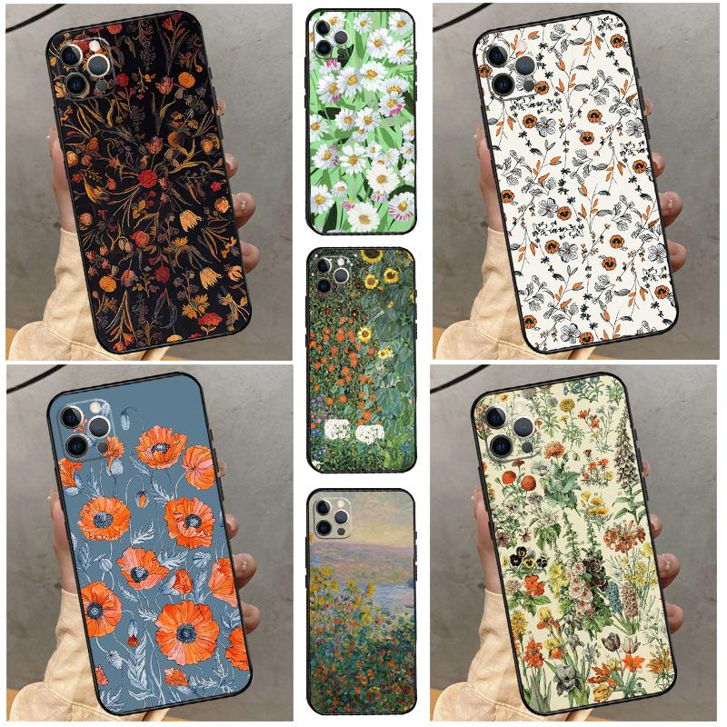 Flower Plant Art Phone Case For iPhone 16 15 14 13 11 12 17 Pro Max Mini 15 16 Plus 16e 17 Air Bumper Cover