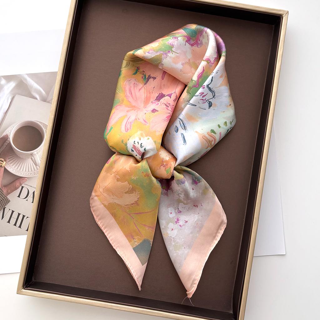 Printed Square Scarf For Women Imitation Silk Scarves Bandanas Luxury Hijab Neckerchief Hair Band Elegant Shawl Wraps