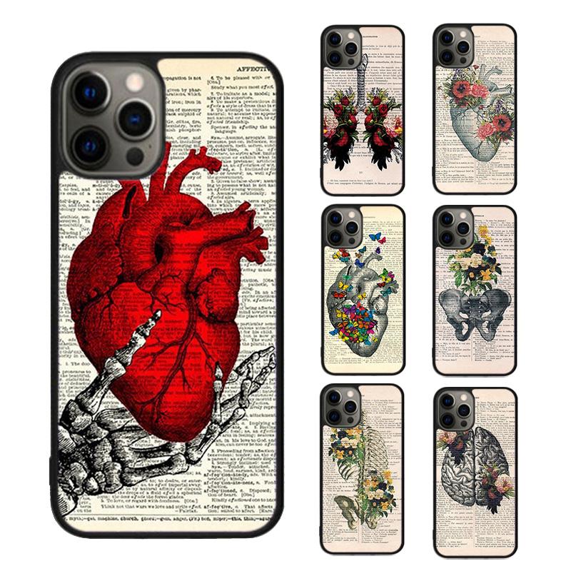 Vintage Anatomy Heart Brain Nurse Phone Case Cover For iPhone 17 Air 15 16 16e 14 13 Pro 12 11 Pro Max For Apple PLUS Fundas