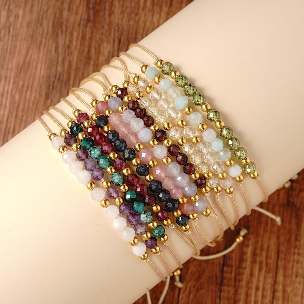 Festive Gifts Multicolor Faceted Stone Beaded Bracelet Set Delicate Fashion Jewelry for Women Daily Wear Simple Versatile Accessory