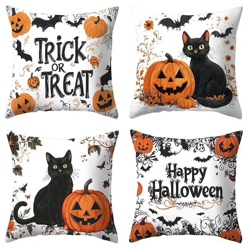 Halloween Linen Cushion Cover Trick or Treat Theme Pillowcase Cats Pumpkin Pillow Cover Halloween Party Decoration 2025