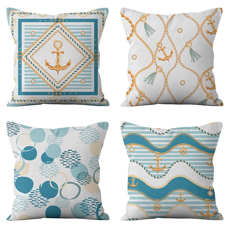 Home Ocean Blue Digital Printed Sofa Pillow Line Cushion Waist Pillow Cover Premium Durable Quality Useful Practical