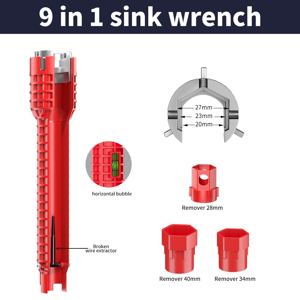9 In 1 Sink Faucet Wrench Multifunction Pipe Wrench Anti-Slip Handle Double Head Wrench For Kitchen Bathroom Water Pipe Repair