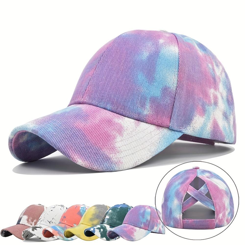 [Pastel Baseball Cap] Breathable Adjustable Women's Baseball Cap | Tie-Dye Pastel Color Block Design, Cross-Back Strap, Mesh Back for Casual & Sports