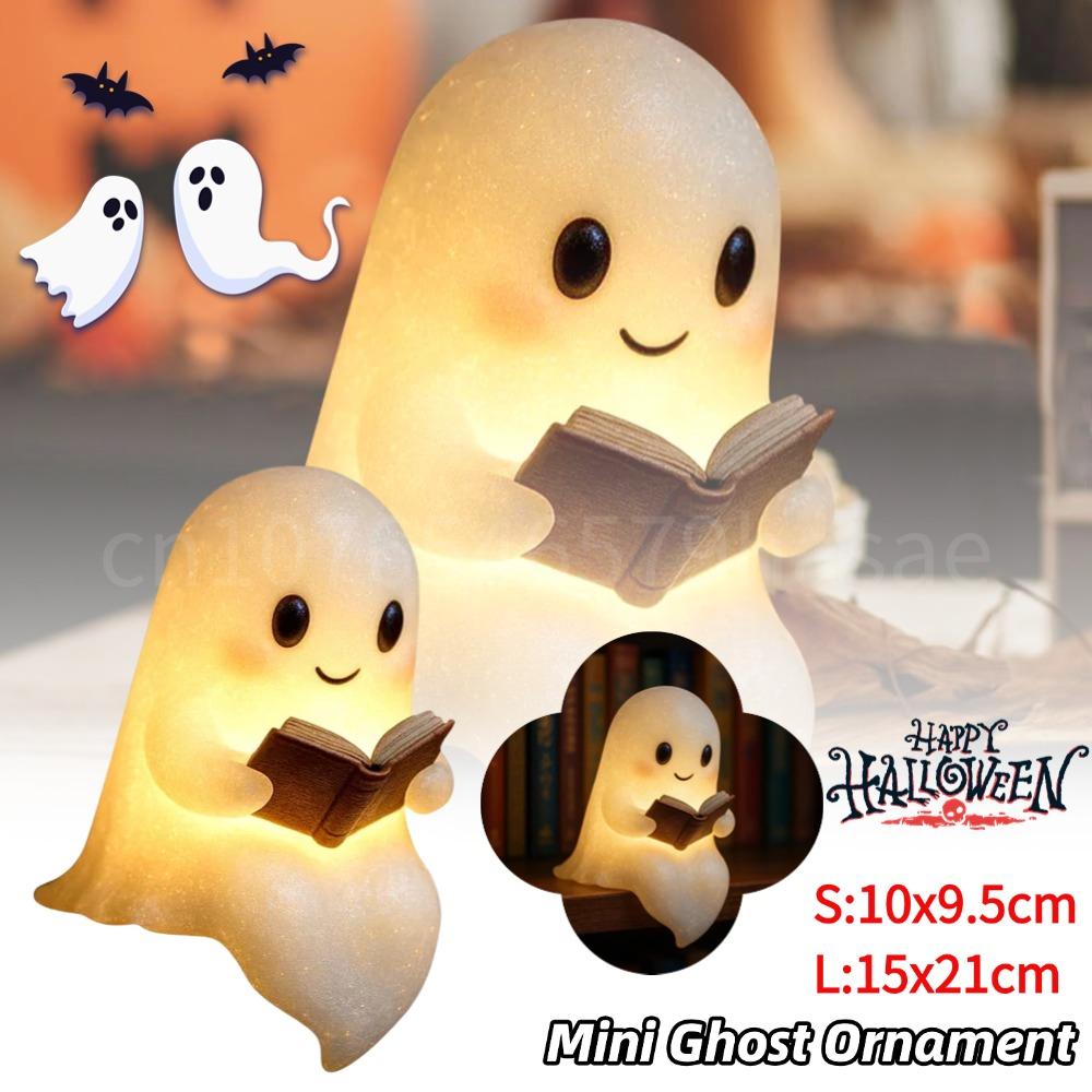 Halloween Cute Ghost Reading Lamp Resin LED Night Light Spooky Desk Light Ornaments For Bedroom Decor Halloween Party Gifts
