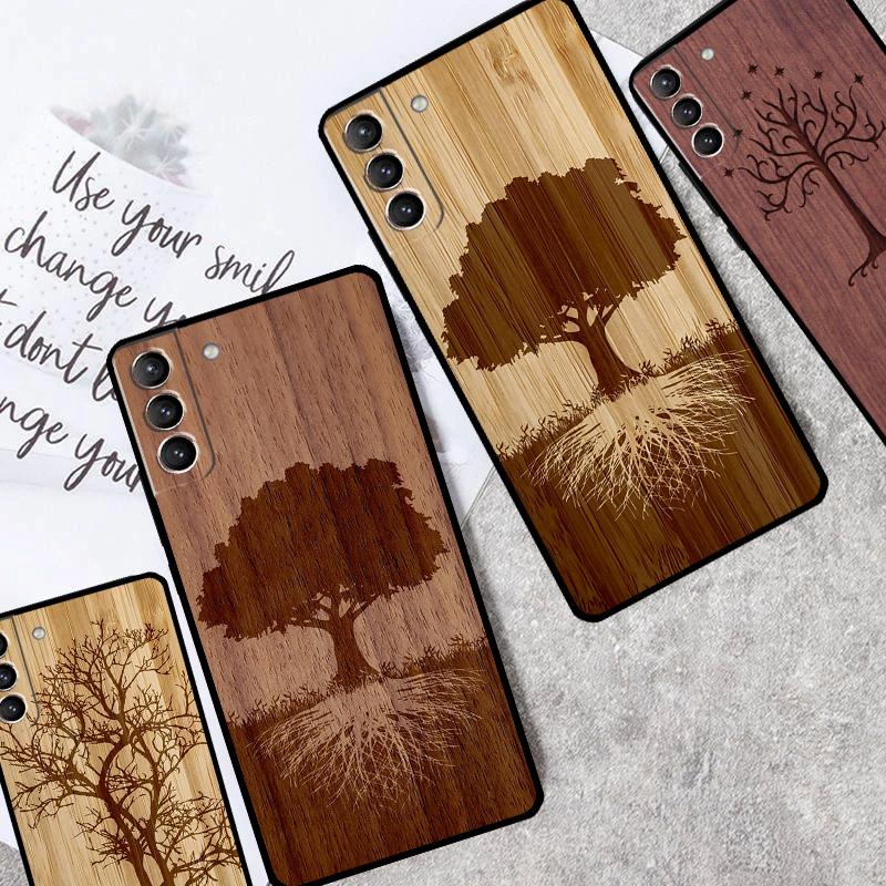 Tree Flower Bamboo Wood Case For Samsung Galaxy S24 S21 S22 S23 Ultra Plus S20 FE S8 S9 S10 Note 10 20 Ultra Cover