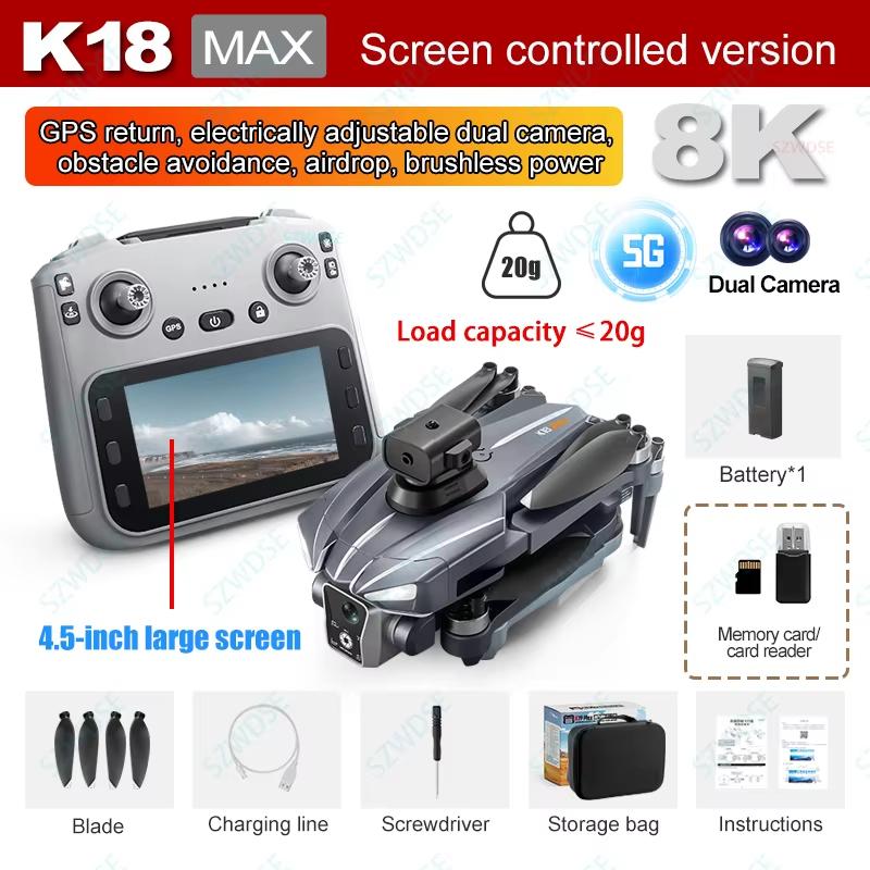 2025 K18 Max Airdrop GPS Drone 5G Screen Control Dual Camera Obstacle Avoidance 8K Aerial Photography Brushless Quadrotor Toy