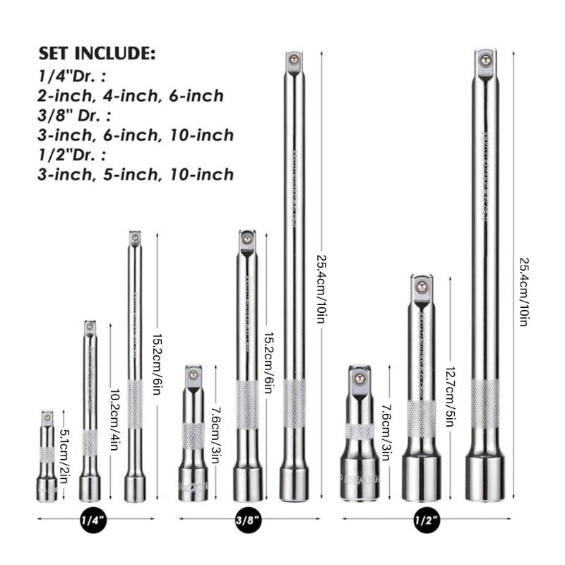 Ratchet Extension Rod 1/4 3/8 1/2Inch Drive Steel Construction Corrosion Resistant For Mechanical Maintenance