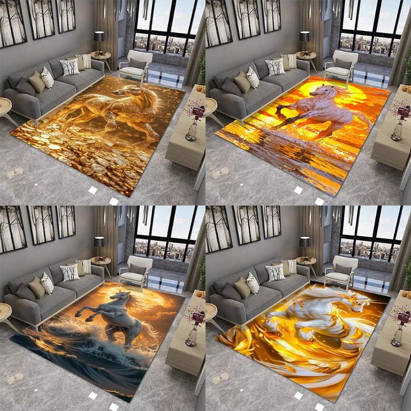 Golden Horse Printing Large Area Rug Non-Slip Wear-resistant Carpet for Living Room Bedroom Soft Floor Mat Home Decor Fashion