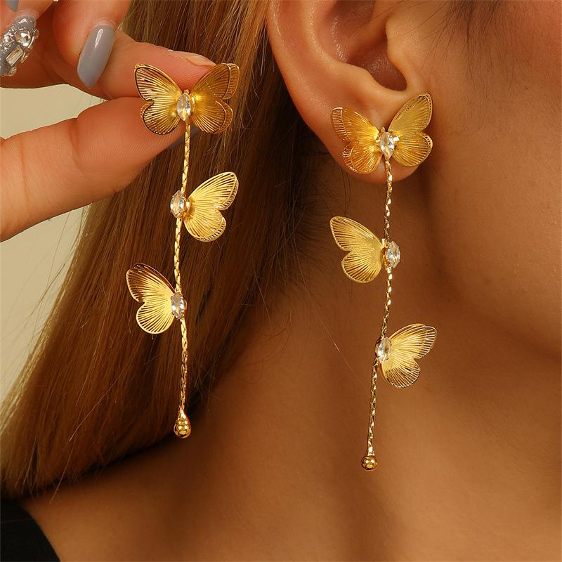 Long-flowing Tassel Butterfly Earrings for Women - Luxurious and High-end Ear Studs with Unique, Exaggerated and Grand Design.