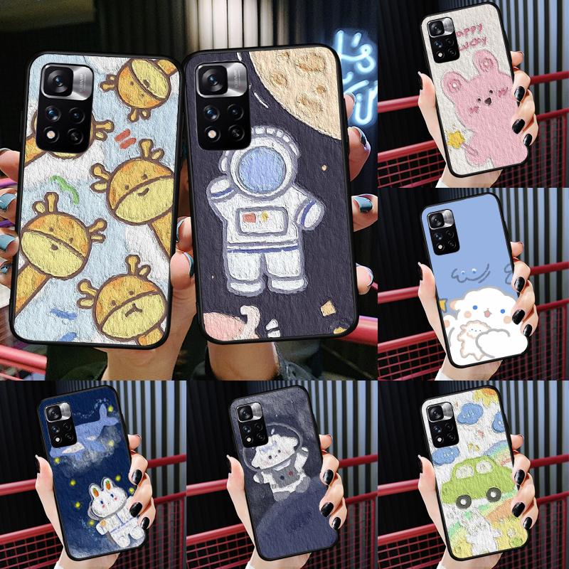 Kawaii Bears Rabbit Oil Painting Case For Xiaomi Redmi 13C 10C 12C 14C Redmi Note 14 13 Pro 12 11 9 10 9S 10S 11S 12S Cover