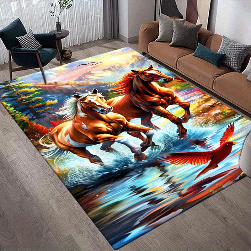1pc Running Horse Print, Design Indoor Area Rug - Soft, Anti-Slip, and Durable Gaming Room Decor for Bedroom, Living Room