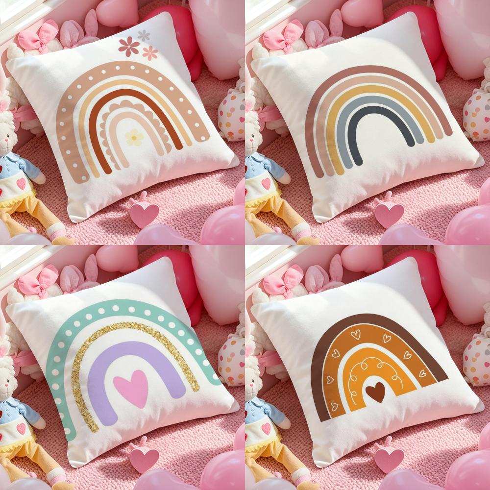 Rainbow Print Cushion Cover Antidustmite Pillowcase Invisible Zipper Silky Short Plush Sofa Cushion Cover