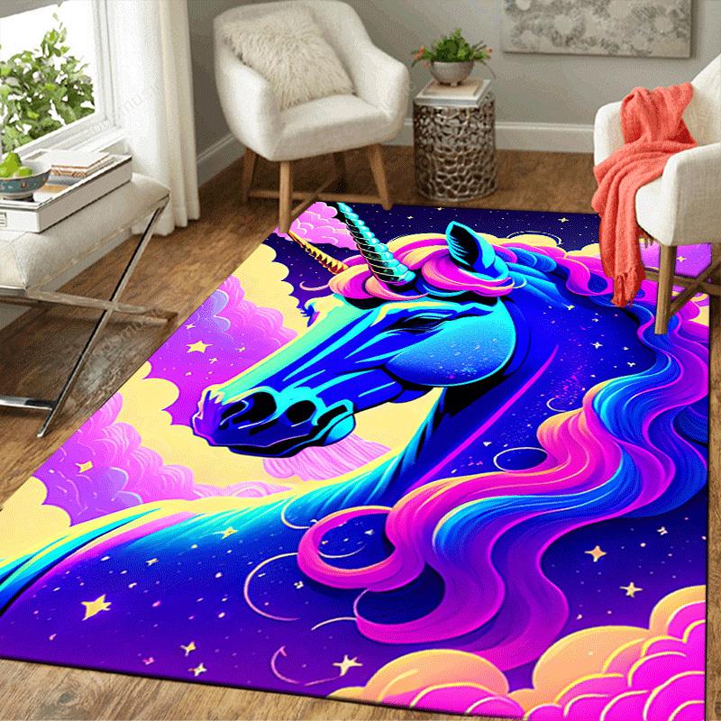1pc Star Unicorn Print Design Area Rug - Soft, Anti-Slip, and Durable Gaming Room Decor for Bedroom