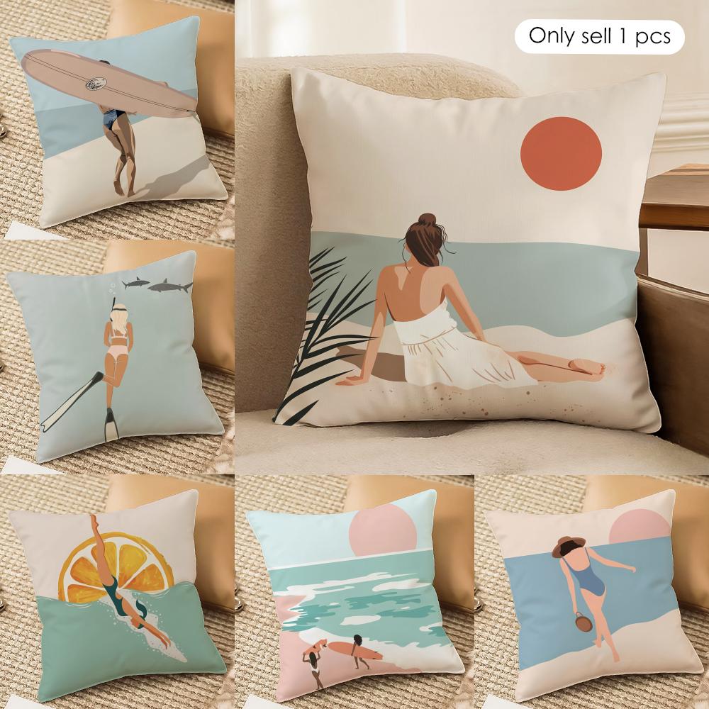 Summer Surfing Ins Art Cushion Cover Silky Short Plush Invisible Zipper Dustproof Sofa Pillow Case For Home Decor