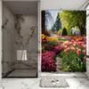 Spring Tulip Garden Shower Curtain - Vibrant Flower Path & Lush Greenery Theme for Bathroom Decor, Adds Freshness and Beauty