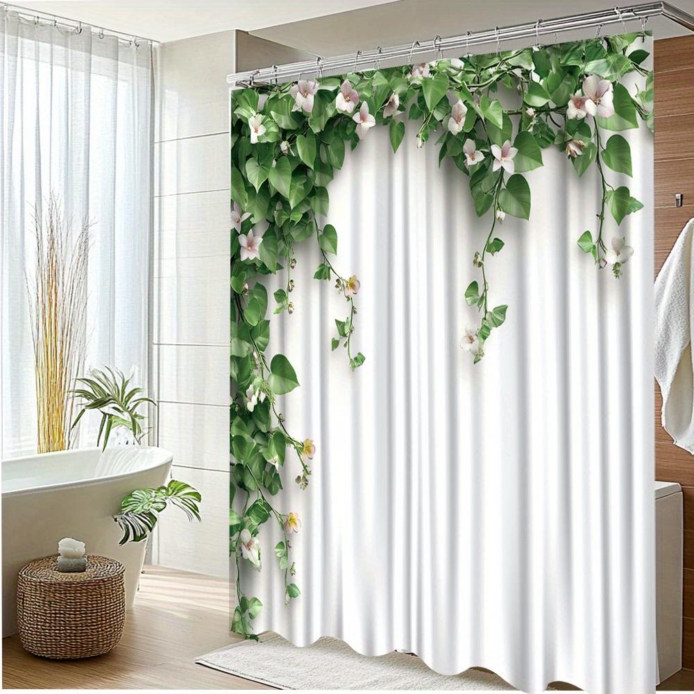 1pc Floral Vine Bathroom Shower Curtain - Elegant Greenery & White Flowers Design, Durable Polyester Fabric, 70. 8x70. 8 Inches
