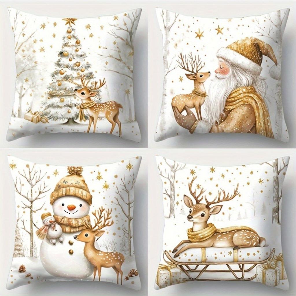 Christmas Decorative Pillows With Deer Snowman Santa Polyester Pillowcase, Sofa Decorative Cushion Cov Headboard Pillow