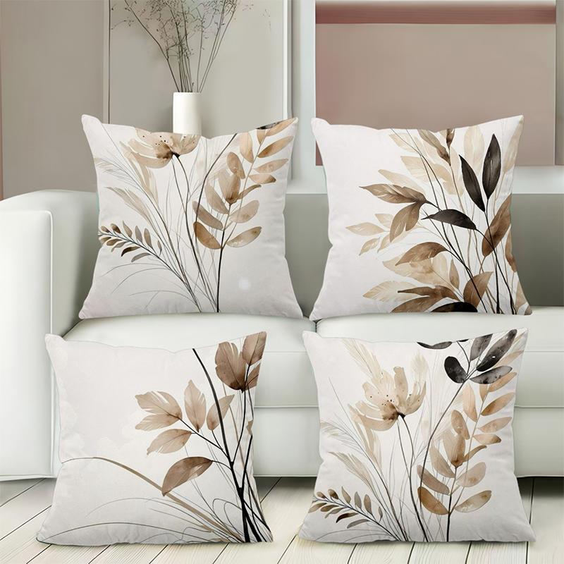 Floral Leaf Patterned Cushions For Modern Home Decor Polyester Pillowcase, Sofa Decorative Cushion Cov Headboard Pillow