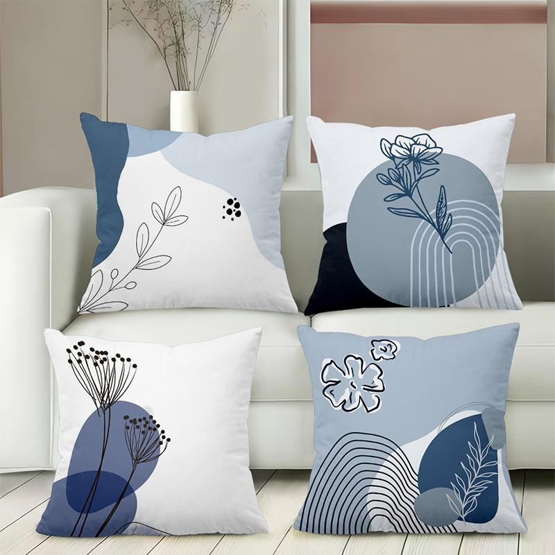 Blue and White Floral Patterned Cushion Covers Set Polyester Pillowcase, Sofa Decorative Cushion Cov Headboard Pillow
