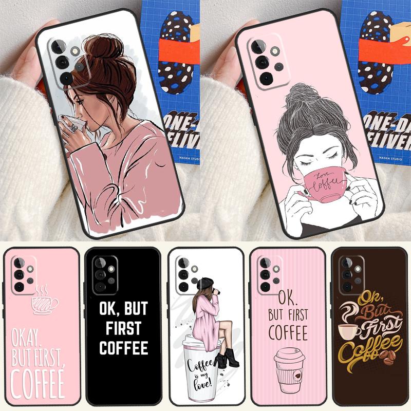 OK But First Coffee For Samsung Galaxy A54 A34 A14 A55 A35 A15 A53 A33 A13 A05 A06 A16 A22 A32 A52 Phone Case