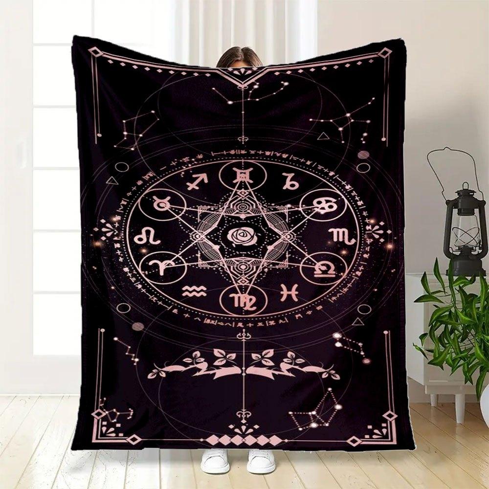 Astrology Zodiac Horoscope Symbol Print Wall Art PosterBlanket Flannel Throw Blanket for Sofa, Bed, Travel, Camping, Office