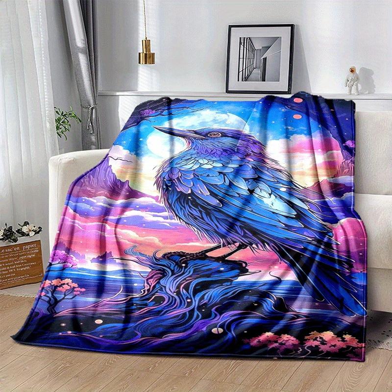 1pc Bird Printing Lightweight Flannel Blanket, Comfortable and Warm Blanket, for Camping Sofa Bed and Couch Office, Gift