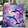 1pc Dolphin Printing Lightweight Flannel Blanket, Comfortable and Warm Blanket, for Camping Sofa Bed and Couch Office, Gift