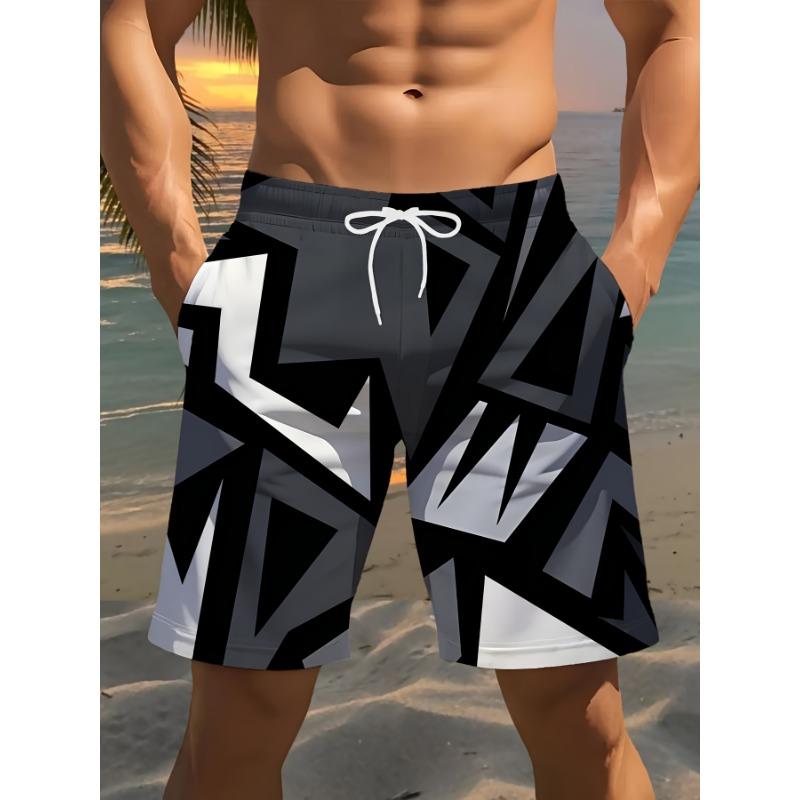 Men's Fashionable Printed Beach Shorts with Geometric Pattern 3D Printing
