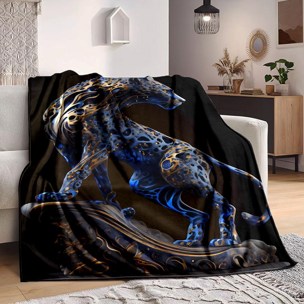 1pc Blue Leopard Blanket, Lightweight Flannel Fleece with Digital Printing, Soft Warm for Sofa, Travel, Camping, Office, Couch, Chair, and Bed, All-Se