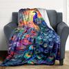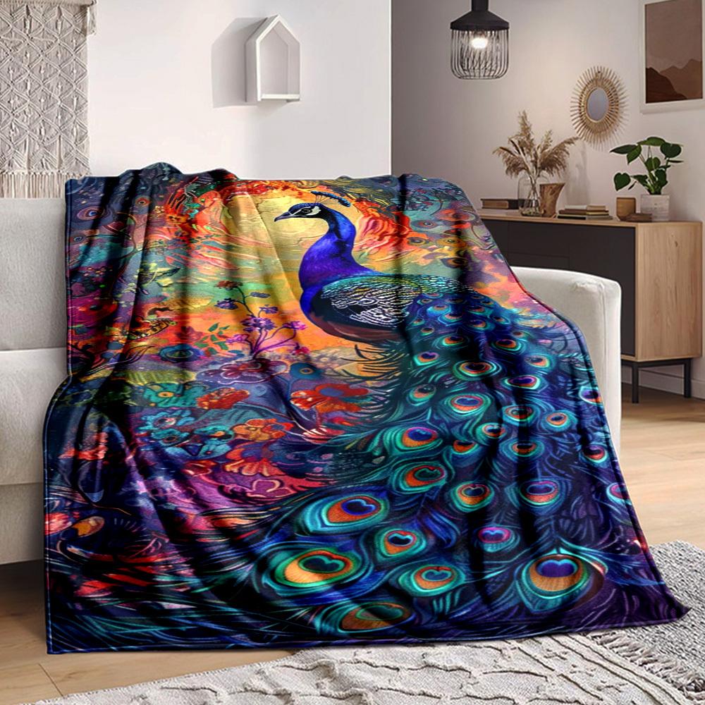 1pc Peacock Feather Print Blanket Lightweight Flannel Blanket Throw Blanket For Sofa, Bed, Travel, Camping, Livingroom, Office, Couch, Chair, And Bed
