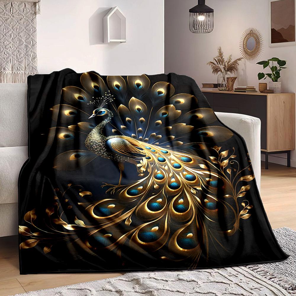 1PC Golden Peacock Feather Blanket, Throw For Sofa, Bed, Travel, Camping, Livingroom, And Bed, Printing Blanket With Soft And Warm Fabric Yy250918154