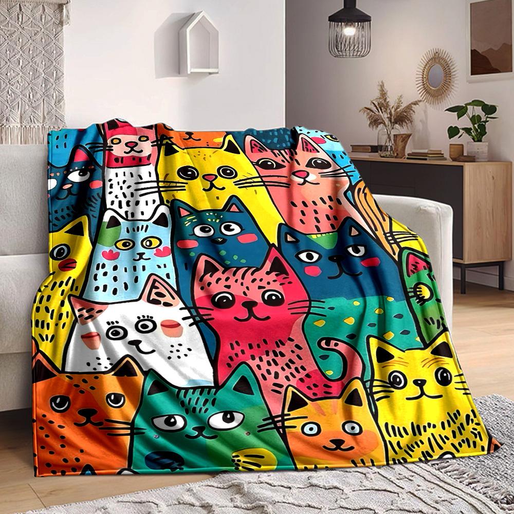 1pc Colorful Cats Blanket Warm, Cozy, And Soft, Suitable for Sofas, Beds, Cars, And Office Use.Perfect for Camping And Travel, Making It a Great Gift