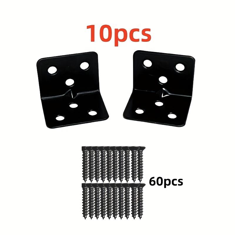70pcs Black L-Shaped Iron Corner Brackets 6-Hole Right Angle Supports for Furniture Repair Table Chairs Bed Frame