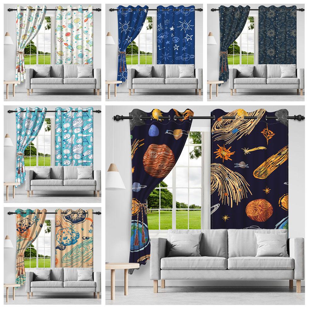 Cosmic Planet Curtains Cartoon Pattern Printed Window Polyester Thermal Insulated Home Interior Curtain Blackout
