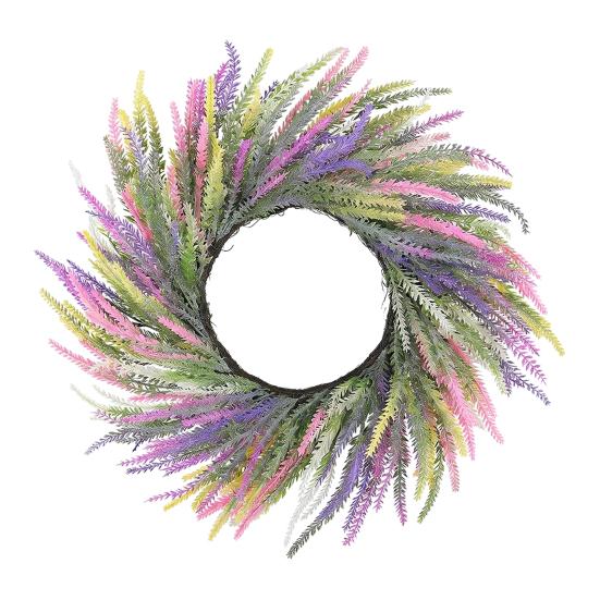 Large Artificial Lavender Wreath 50cm Diameter Faux Farmhouse Floral Garland for Door Wall Wedding Party Decor Summer Home Office Decoration