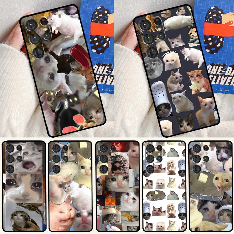 Crying Cat Memes And Dog Phone Case For Samsung Galaxy S25 Ultra S24 Ultra S9 S10 S20 S21 S22 Plus S23 S24 FE Cover
