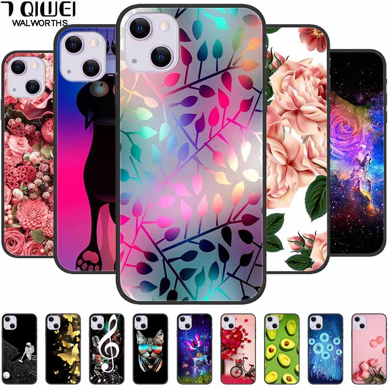 For iPhone 14/14 Plus Case Black Silicone Soft TPU Luxury Flower Animal Back Cover For iPhone 14/14 Plus New Shells for iPhone14
