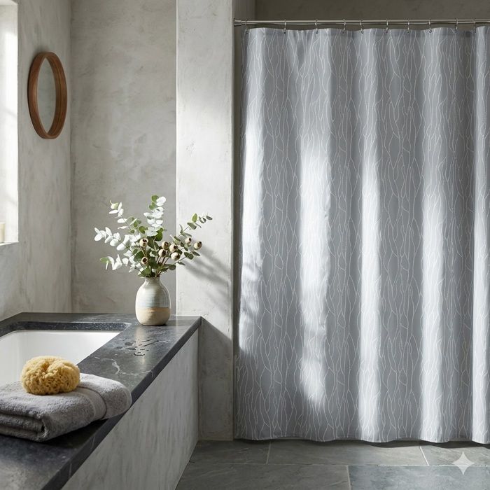 Rideau de douche - EDEN - Urban - 180 x 200 cm - Gris clair - 100% polyester