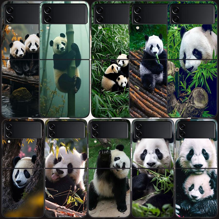 Panda Baby, Giant Panda Family Phone Case For Samsung Z Flip 7 6 5G Galaxy Z Flip 5 4 3 Black Hard Cell Cover Luxury PC Shell C