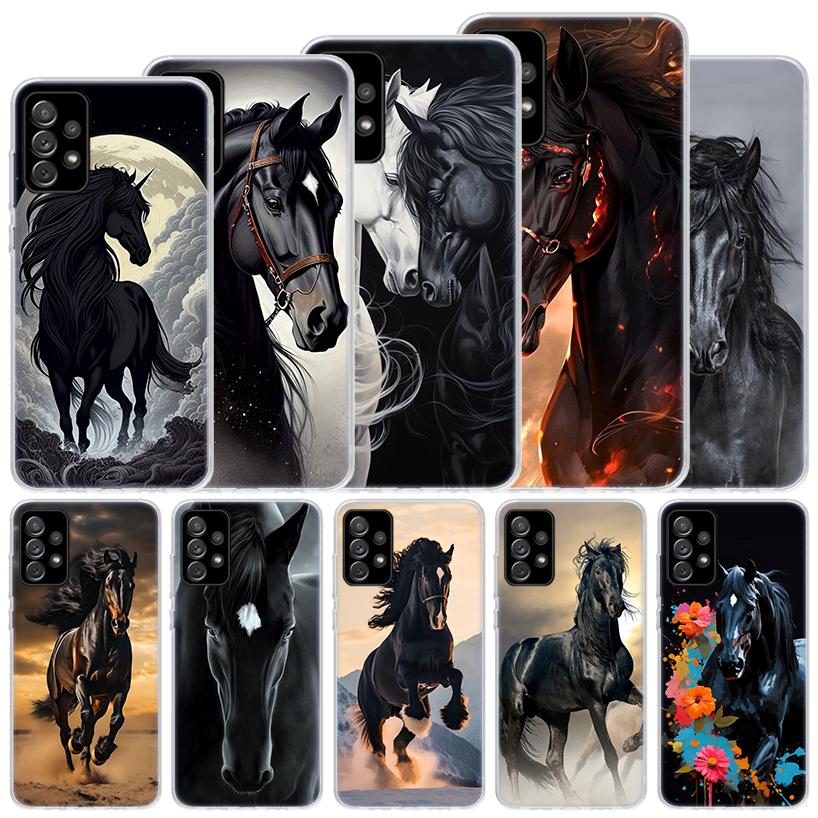 Animal Black Horse Soft Case For Samsung Galaxy A52 A51 A50S A12 A10S A20S A30S Phone Cover A71 A41 A31 A21S A70 A40 A20E A11 A5