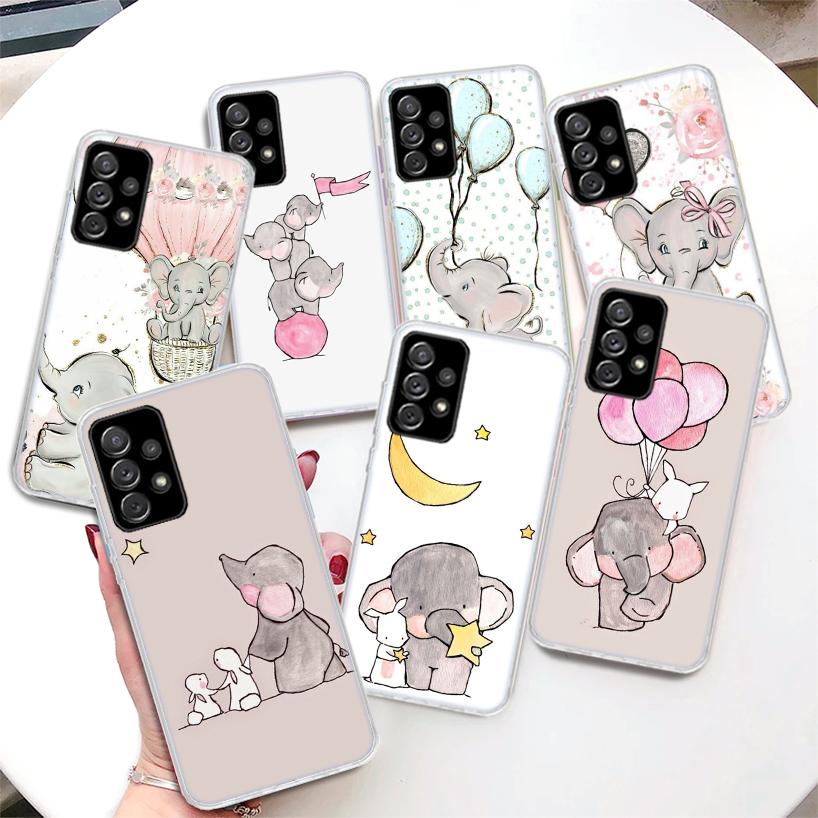 Cartoon Elephant Pink Phone Case For Samsung Galaxy A12 A13 A52 A53 A32 A33 A22 A23 A02S A03S A72 A73 A42 Soft Cover Silicone Sh