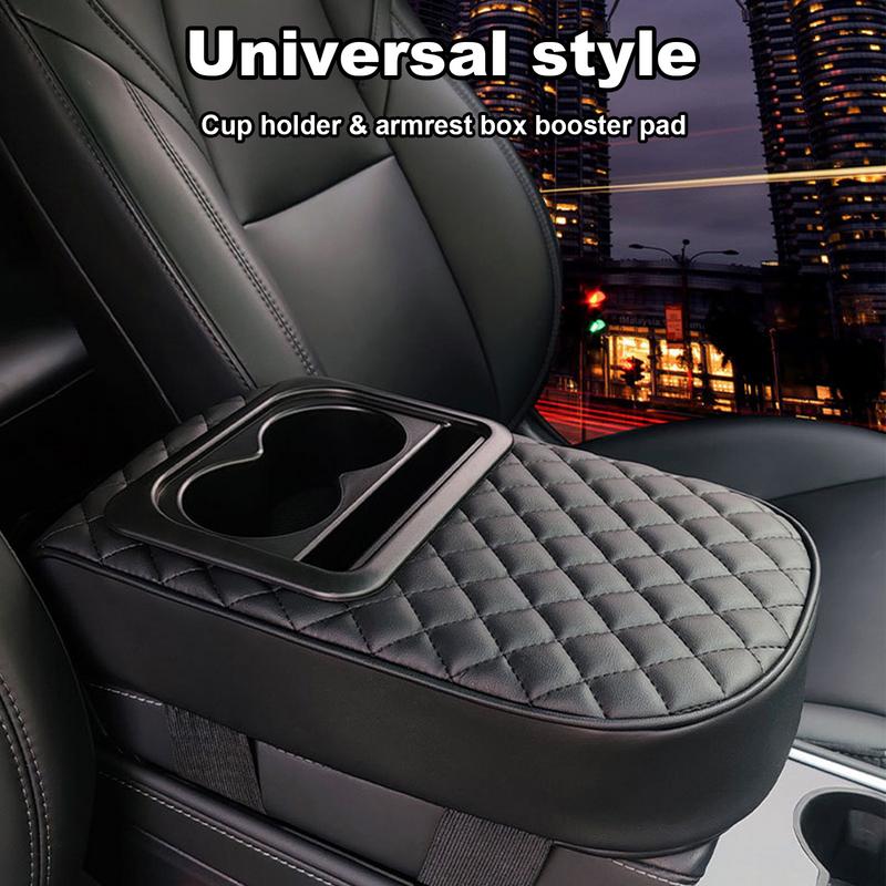 Car Center Console Armrest Cushion With 2 Cup Holder PU Leather Armrest Pad Height Pad Auto Amrest Pillow Cover Heighten Pads