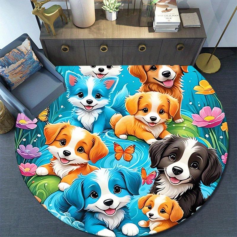 1pc Soft, Absorbent & Non Slip Cute Puppy Round Rug Soft Circle Rug for Living Room & Bedroom Decor, Chair Mats, and Unforgettable Home Gift