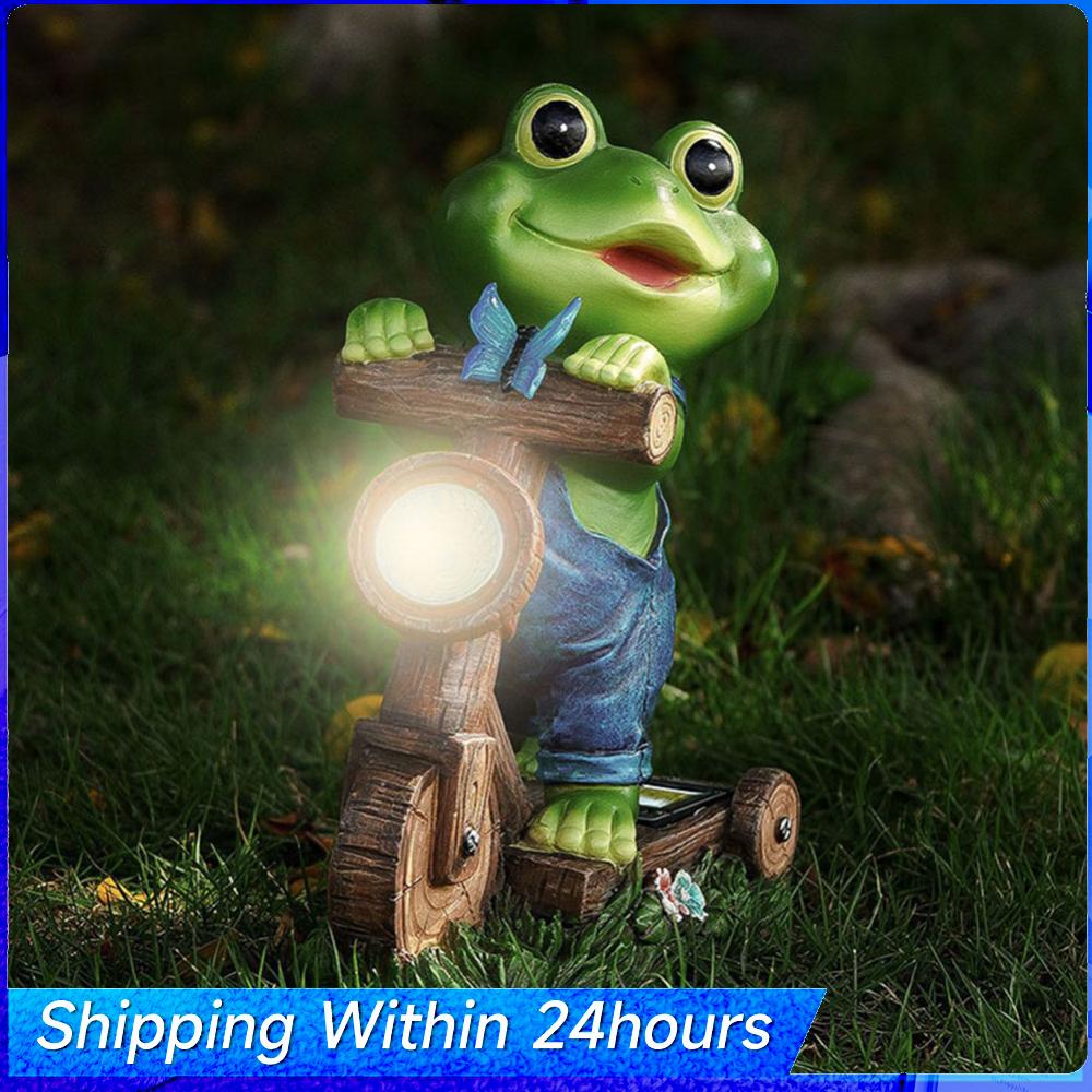 Resin Garden Frog Statue with Solar Light Frog Cycling Model Frog Ornaments Frog Sculpture for Outdoor Garden Yard Decor