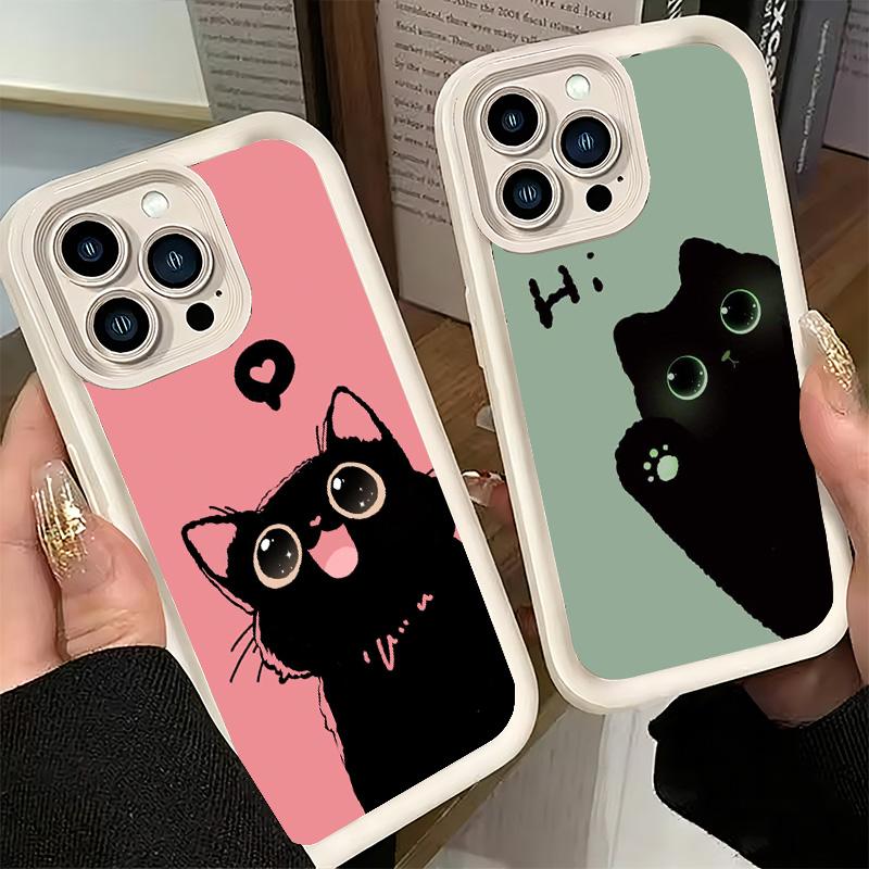 Phone Case for iPhone 17 Air 16E 15 16 Pro Max Black Cat Cartoon Cute Cover 14 Plus 13 12 Mini Soft Shell Silicone Fundas