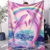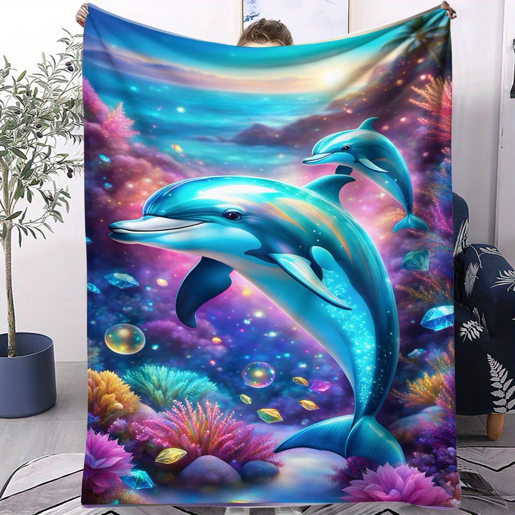 Sunset Beach DolphinCute Blanket For Girl Boy Sofa Office Travel Comfort Leisure Camp Travel Multifunctional Universal Blanket