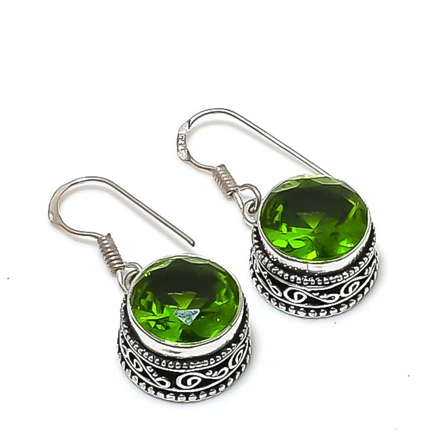 Natural Peridot Gemstone Handmade 925 Sterling Silver Jewelry Earring 1.18" AE-11936