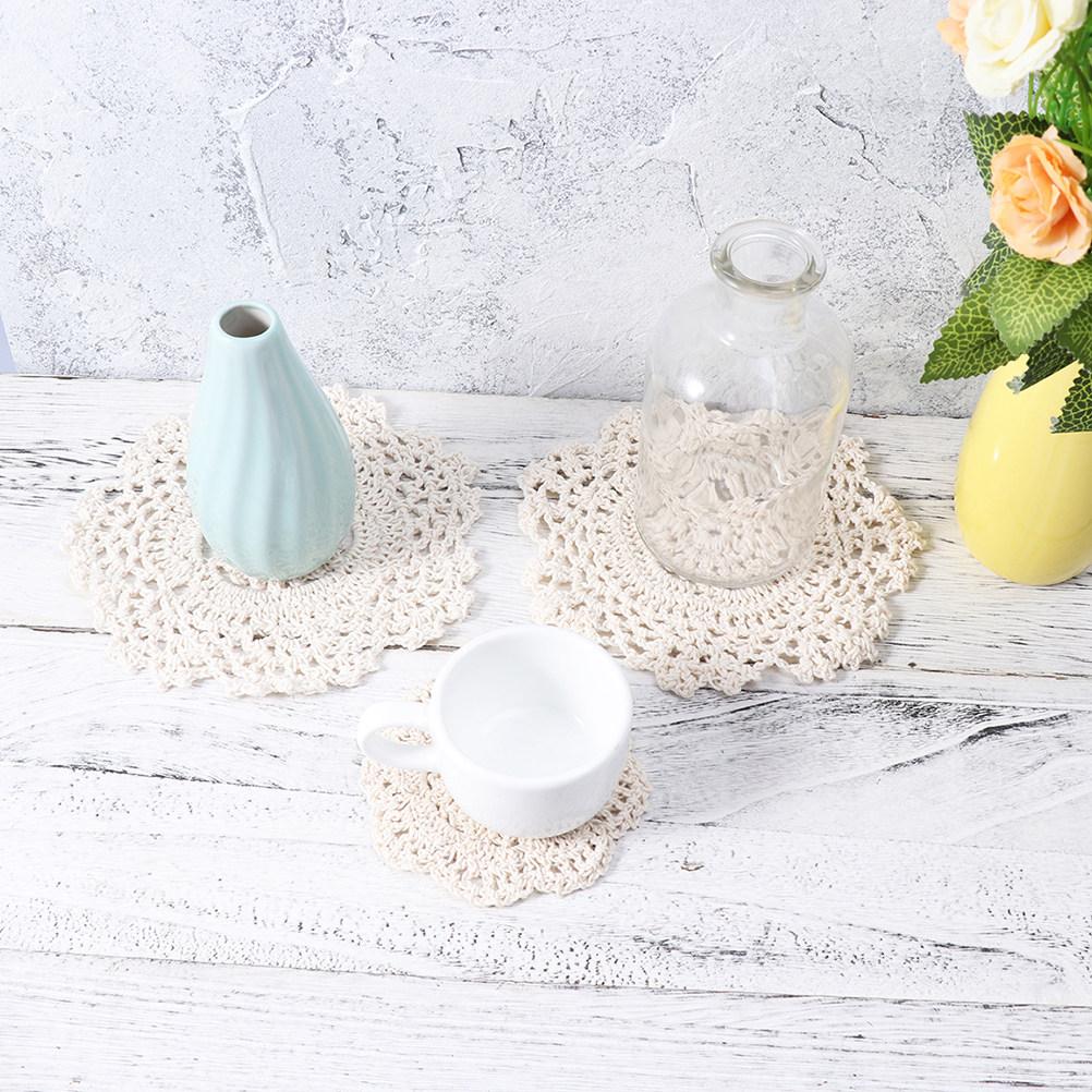 6Pcs 14Cm Round Lace Crochet Coasters Handmade Elegant Hollow Drink Pads Fashion Tabletop Decor for Brunch Dinner Gifts
